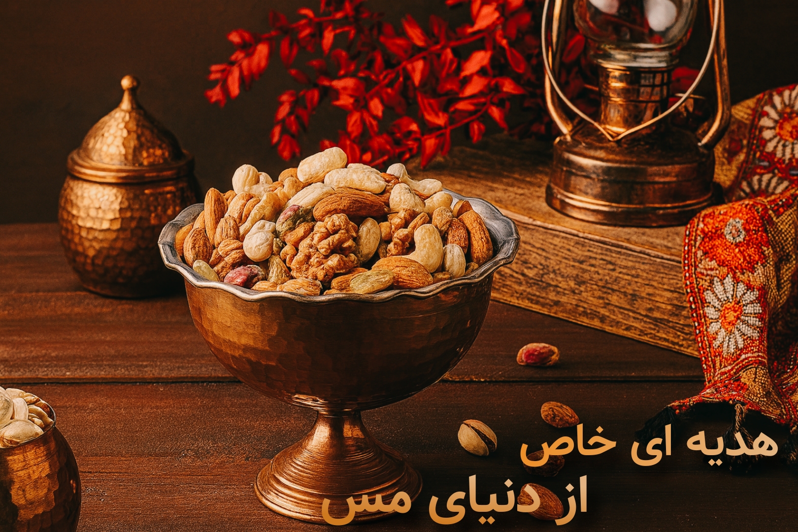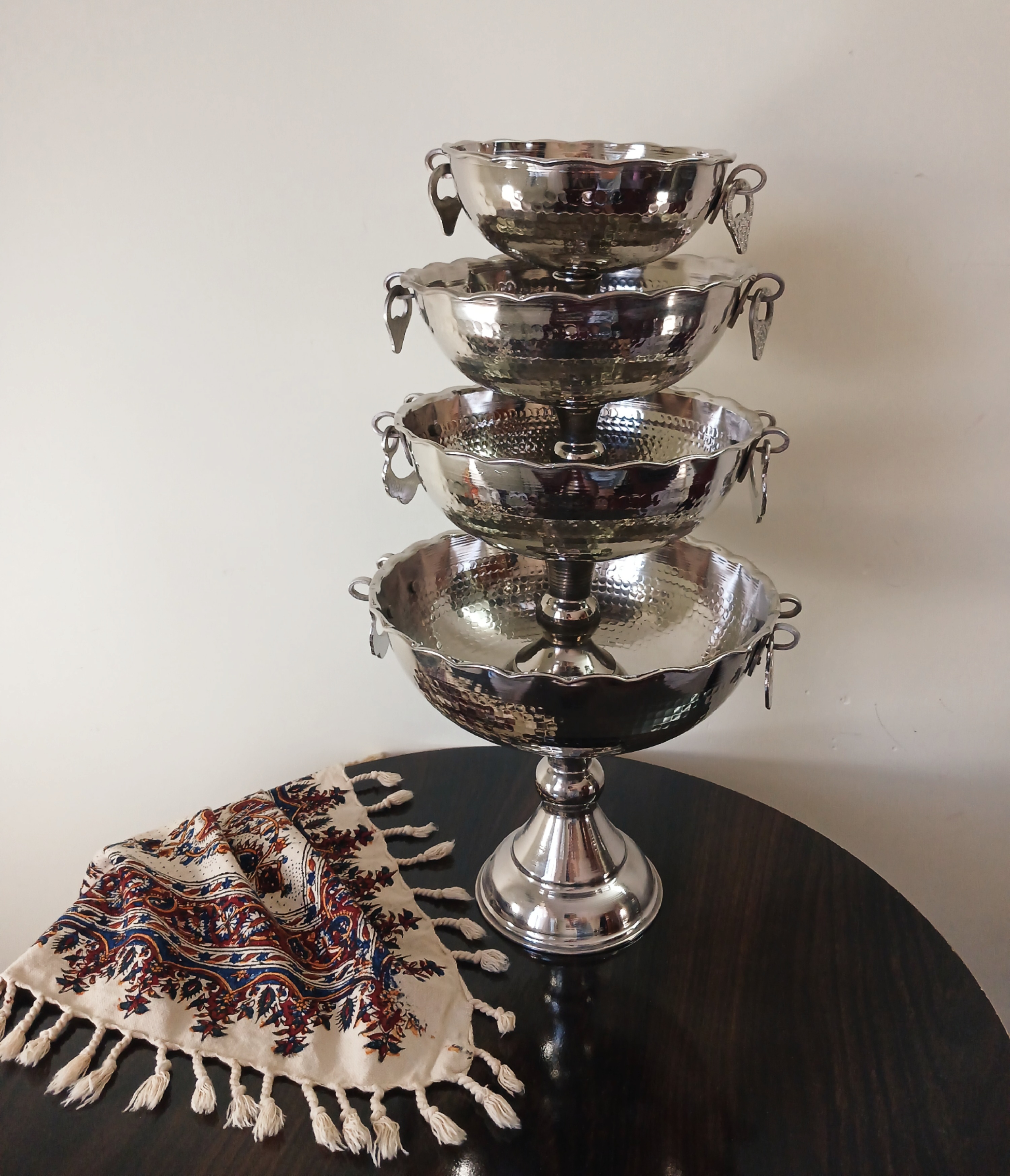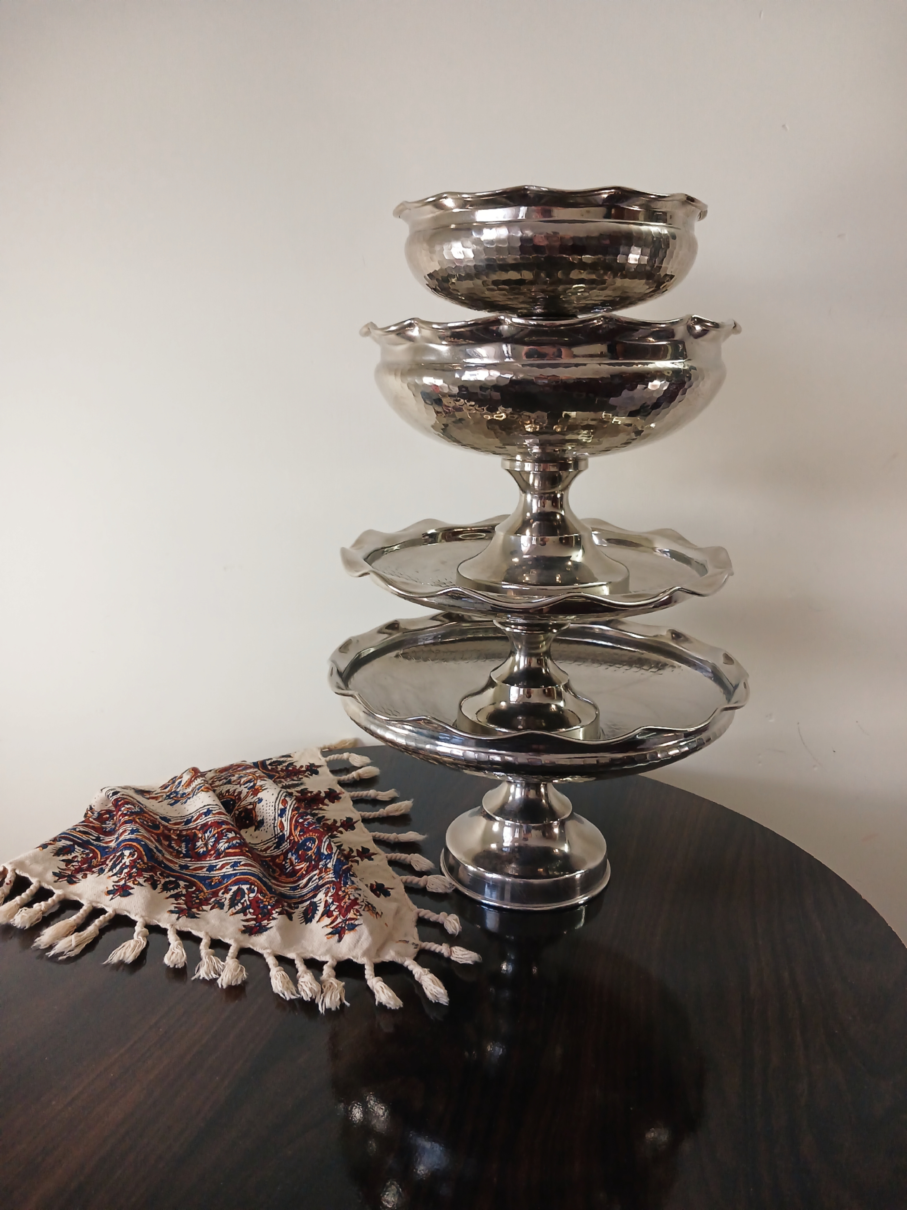 شکلات خوری پایهدار مسی طرح لاله چکشی نانو