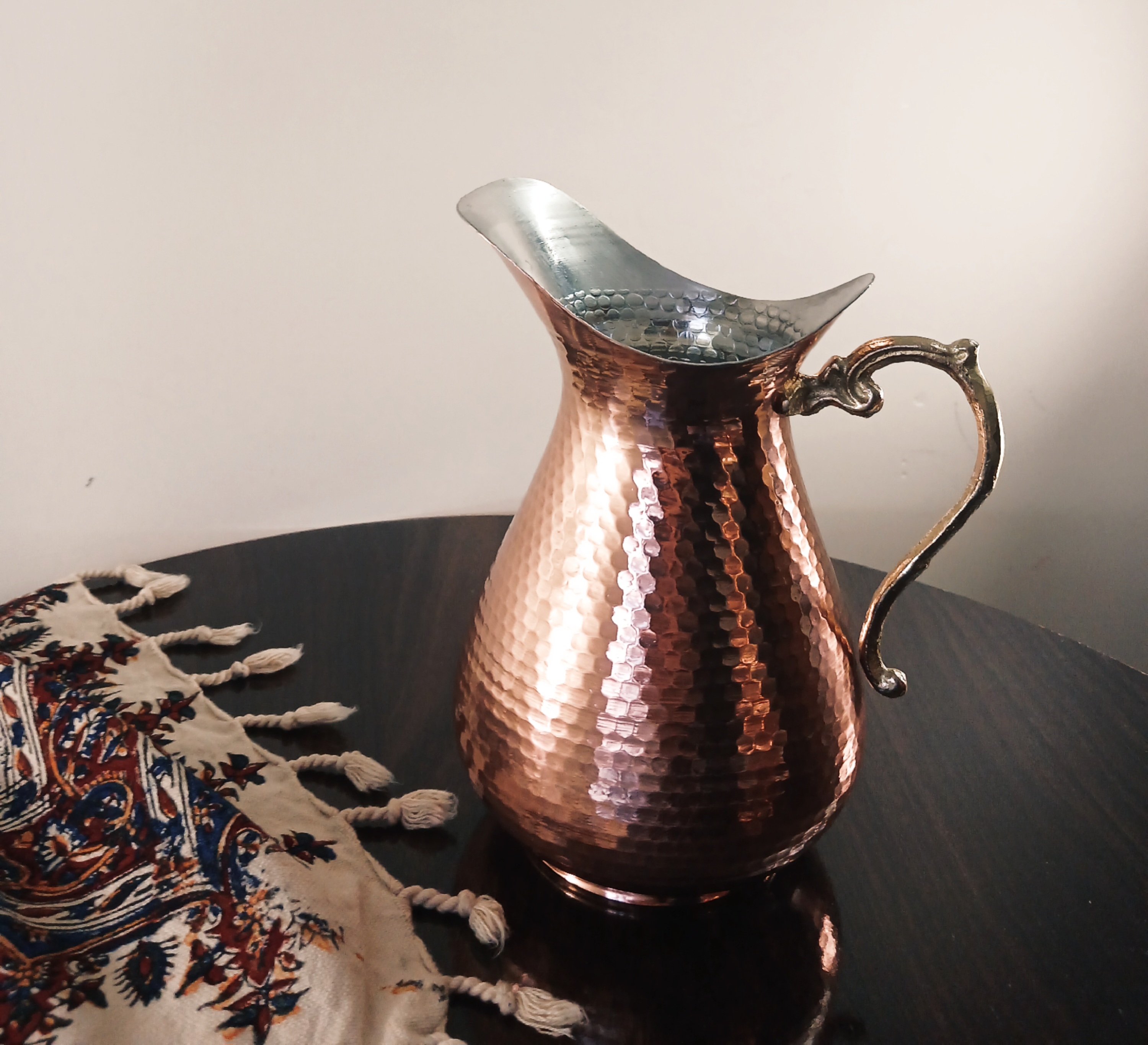 پارچ مسی طرح چکشی دسته برنجی نانو