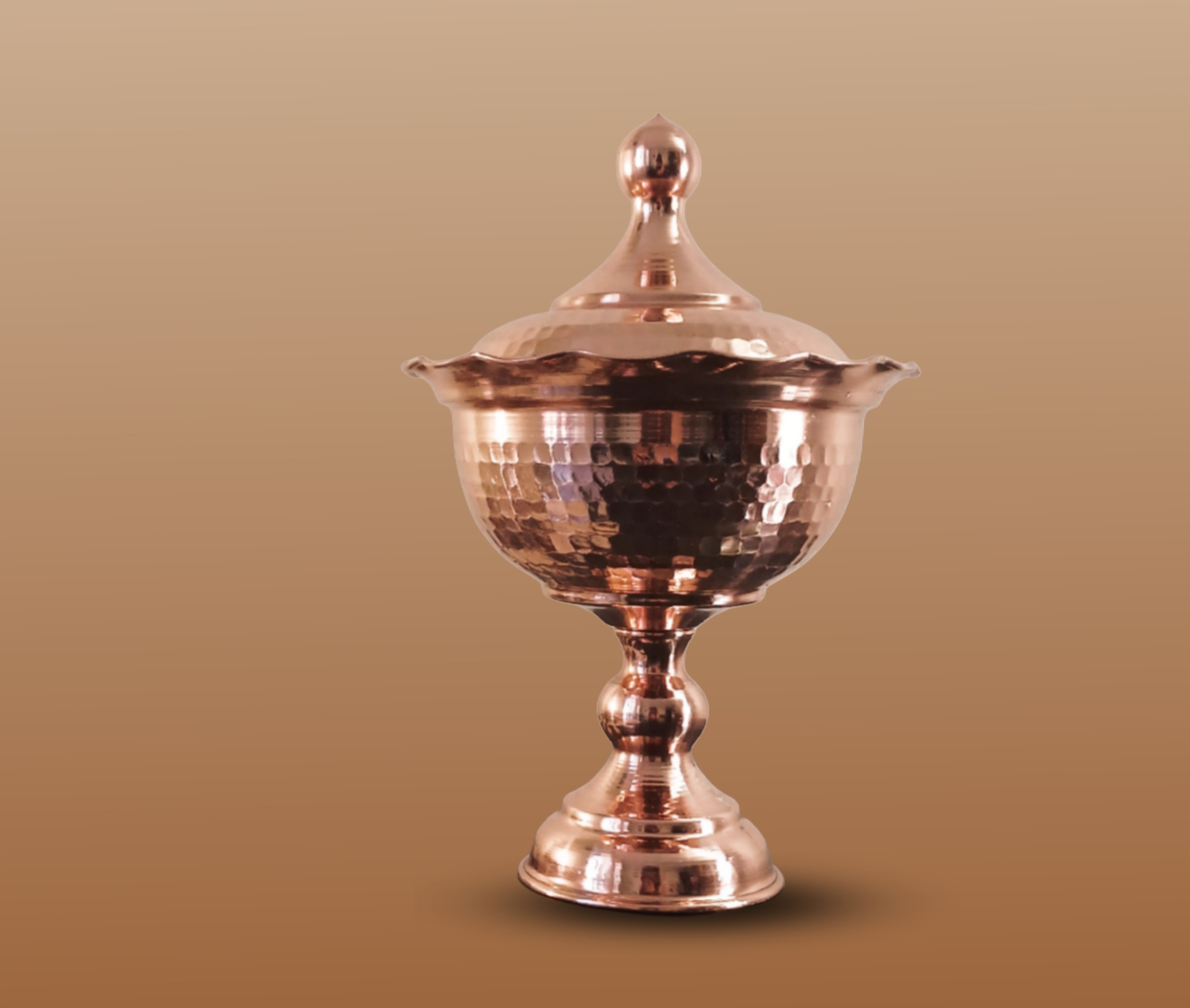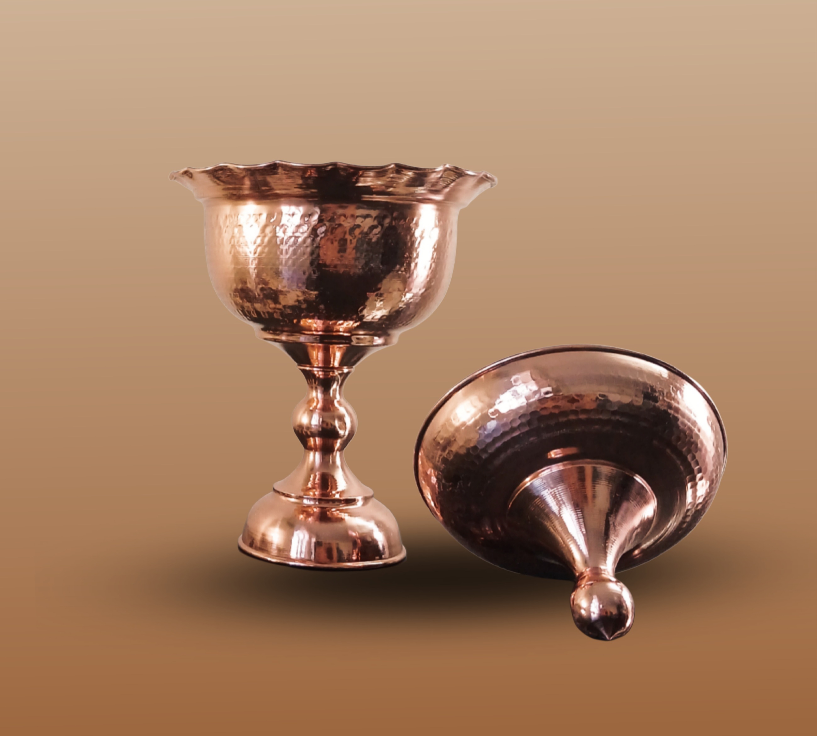 قندان پایه دار مسی طرح لاله چکشی نانو