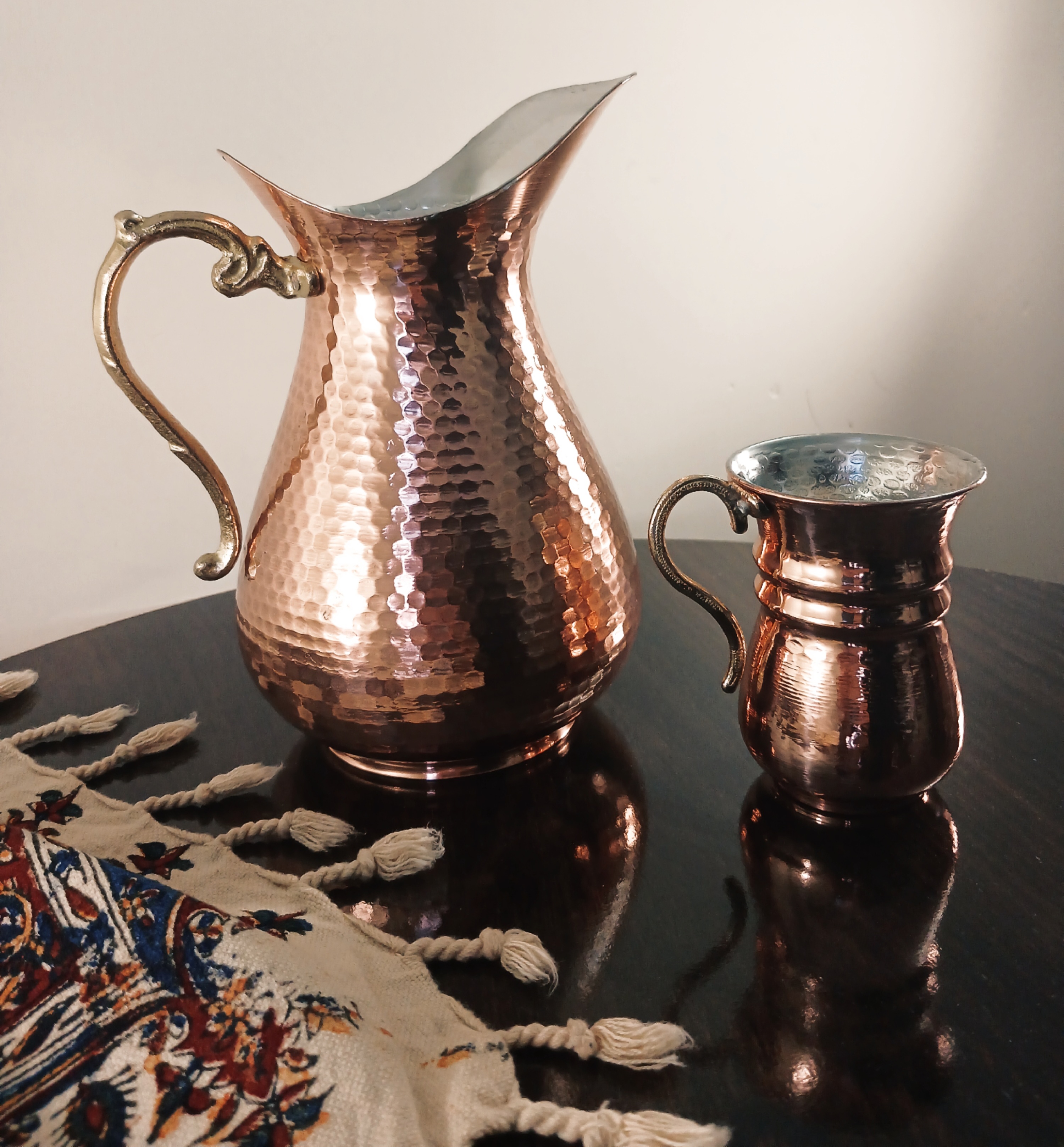 لیوان مسی طرح چکشی ،بسیار باکیفیت ، دسته برنجی ،داخل قلع ،هم نانو و هم بدون نانو موجود است