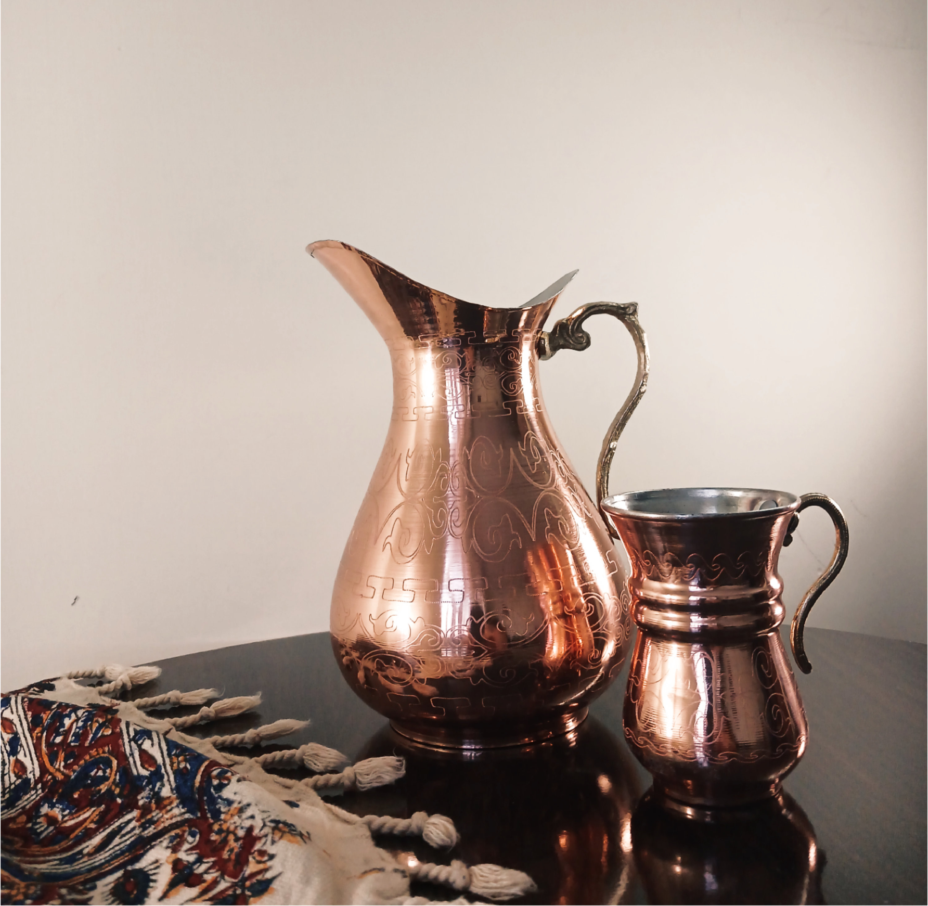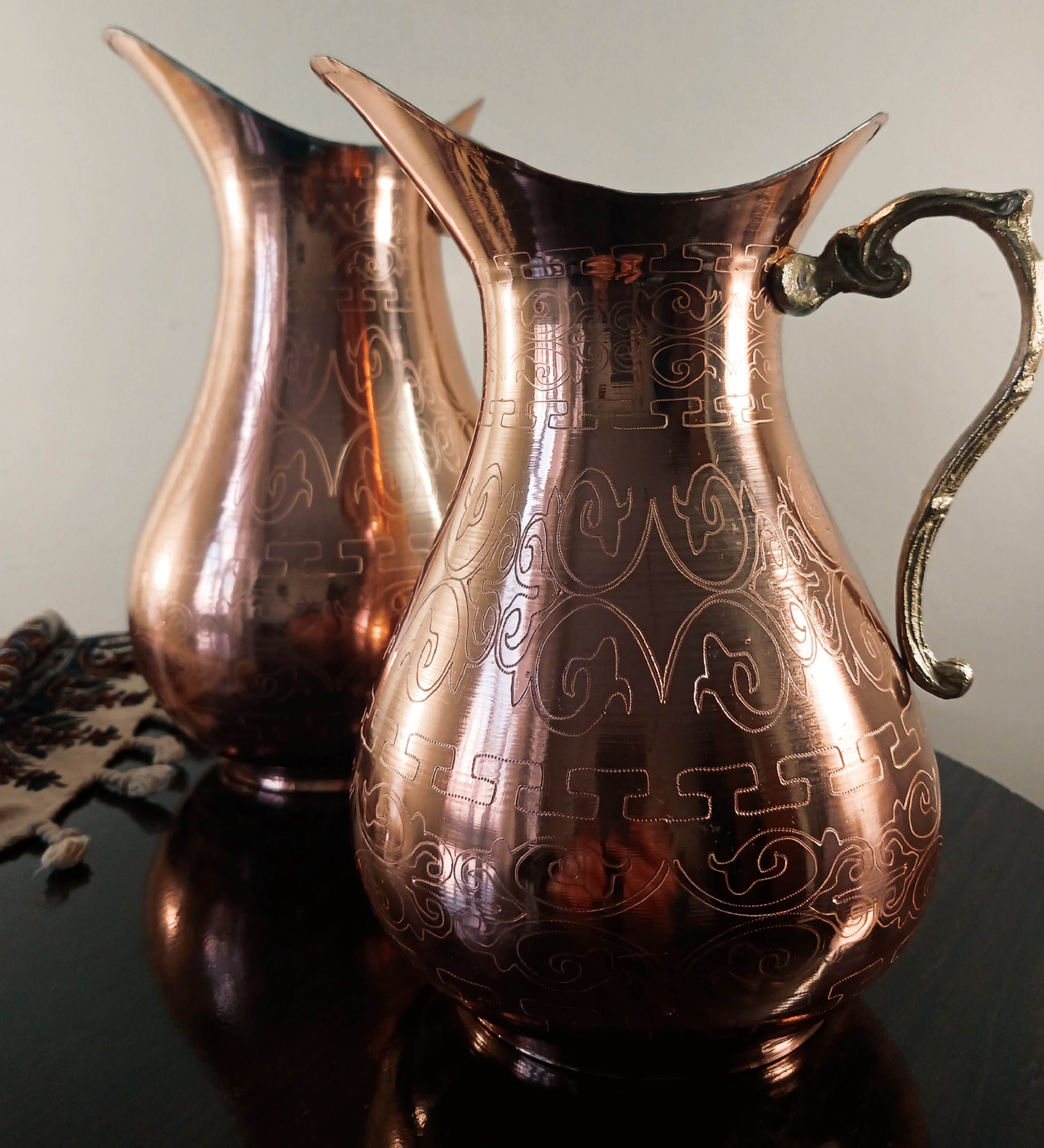 پارچ مسی طرح دار نانو شده دارای 2سایز . مناسب برای مصرف روزانه و یا دکور